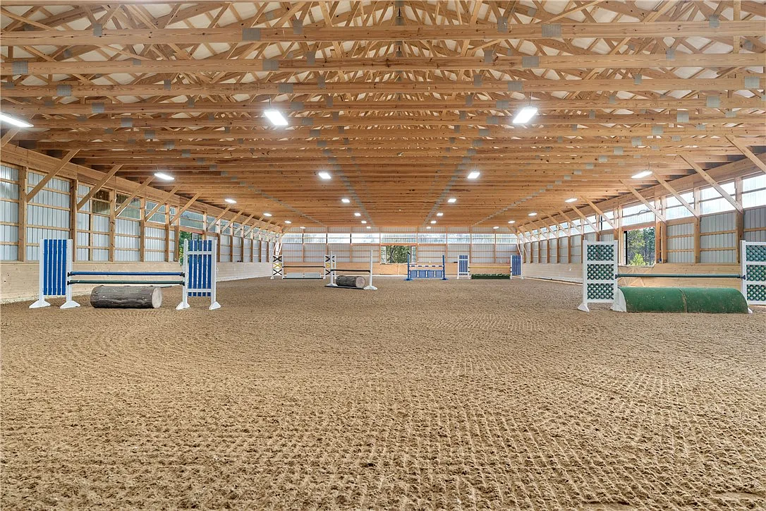 access to 80x160 indoor arena with wax coated sand and fiber Travelite footing